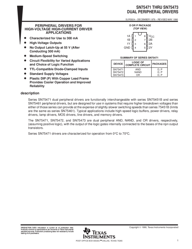 SN75471P Peripheral Drivers 8-Pin PDIP Tube