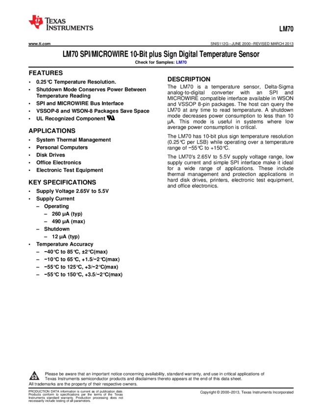 LM70CIMM-3/NOPB, LM70CIMM-5/NOPB, LM70CIMMX-3/NOPB