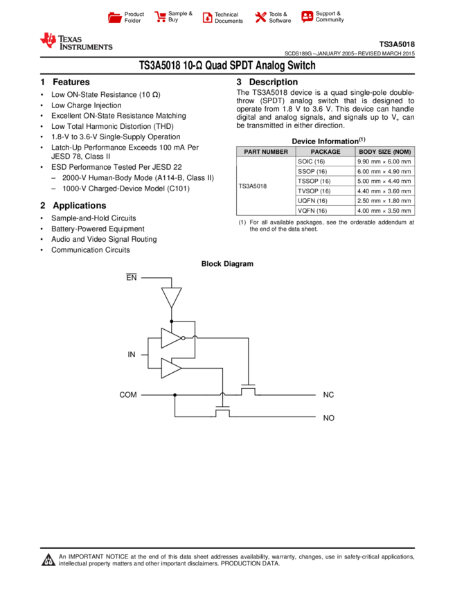 TS3A5018RGYR Analog Switch Quad SPDT 16-Pin VQFN EP T/R