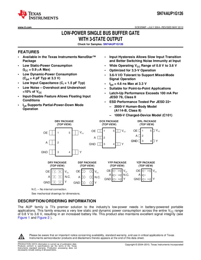 SN74AUP1G126DBVT Buffer/Line Driver 1-CH Non-Inverting 3-ST CMOS 5-Pin SOT-23 T/R