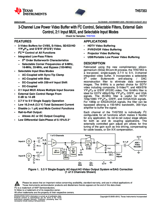 THS7353PWR Video Amp Triple 5.5V 20-Pin TSSOP T/R
