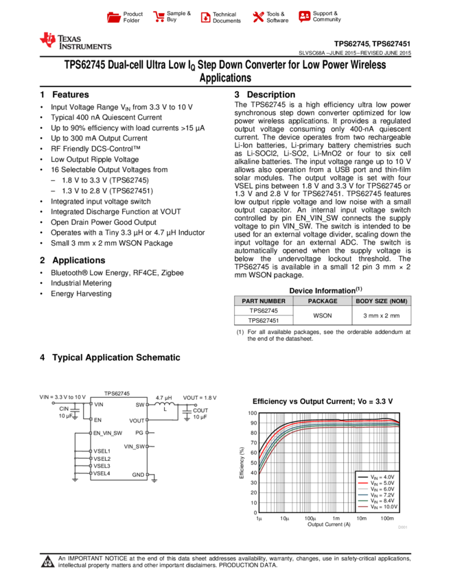 TPS627451DSST Conv DC-DC Single Step Down 3.3V 10V 12-Pin WSON T/R