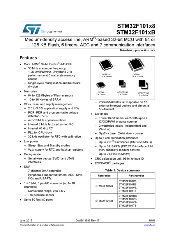 STM32F101C8U6TR, STM32F101VBT6TR, STM32F101CBU6TR, STM32F101V8T6TR