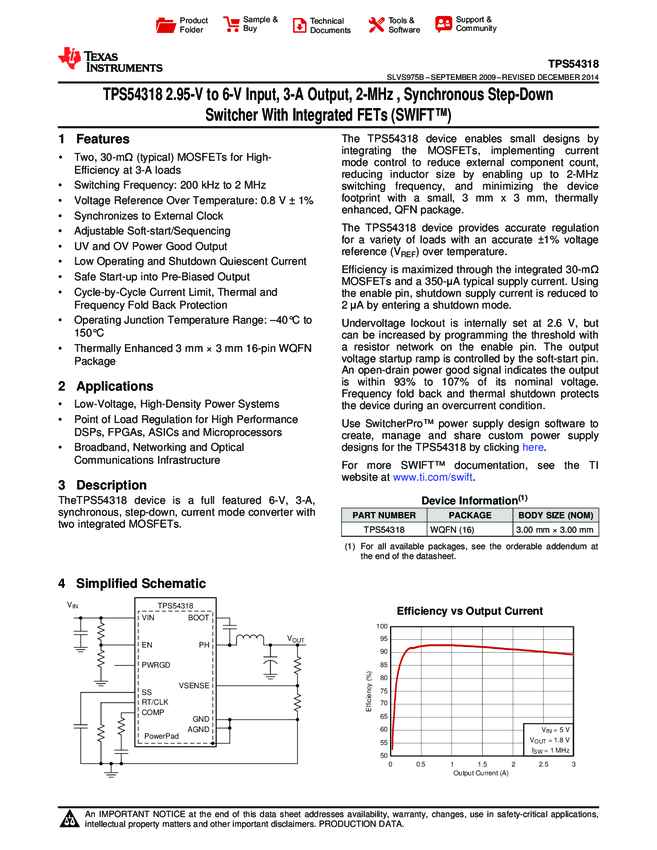 TPS54318RTER Conv DC-DC Single Step Down 2.95V to 6V 16-Pin WQFN EP T/R