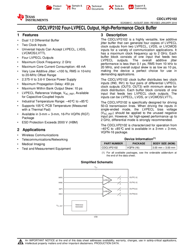 CDCLVP2102RGTT Clock Fanout Buffer 8-OUT 16-Pin VQFN EP T/R