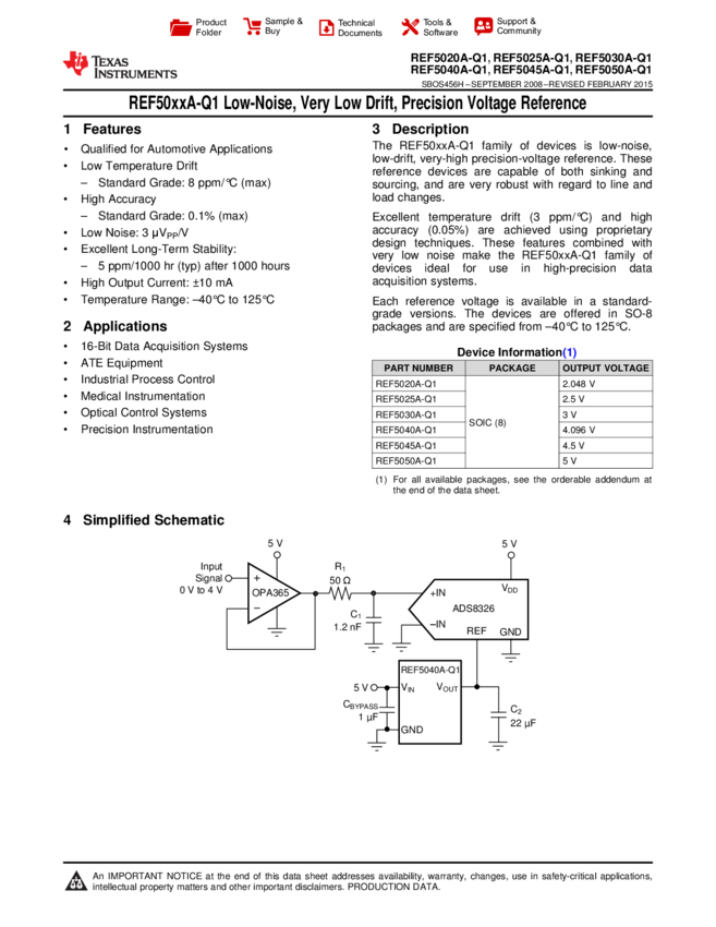 REF5030AQDRQ1, REF5025AQDRQ1, REF5045AQDRQ1