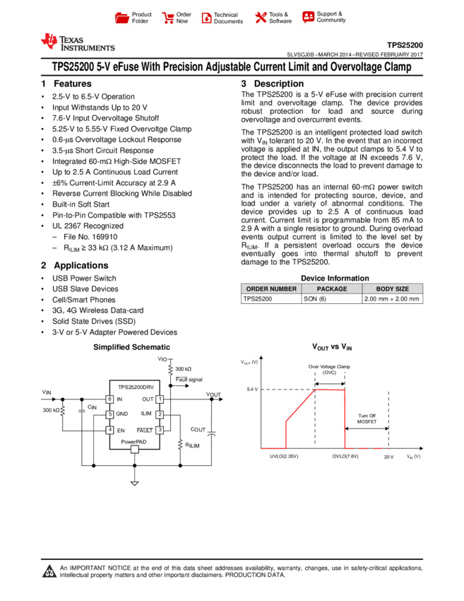 TPS25200DRVT eFuse With Precision Current 6-Pin SON T/R