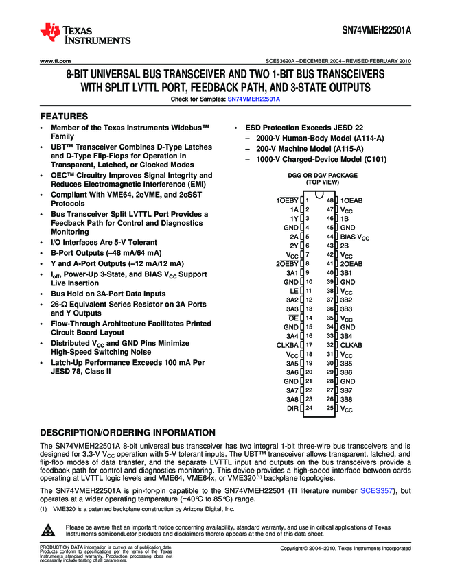 SN74VMEH22501ADGGR Bus XCVR Single 10-CH 3-ST 48-Pin TSSOP T/R