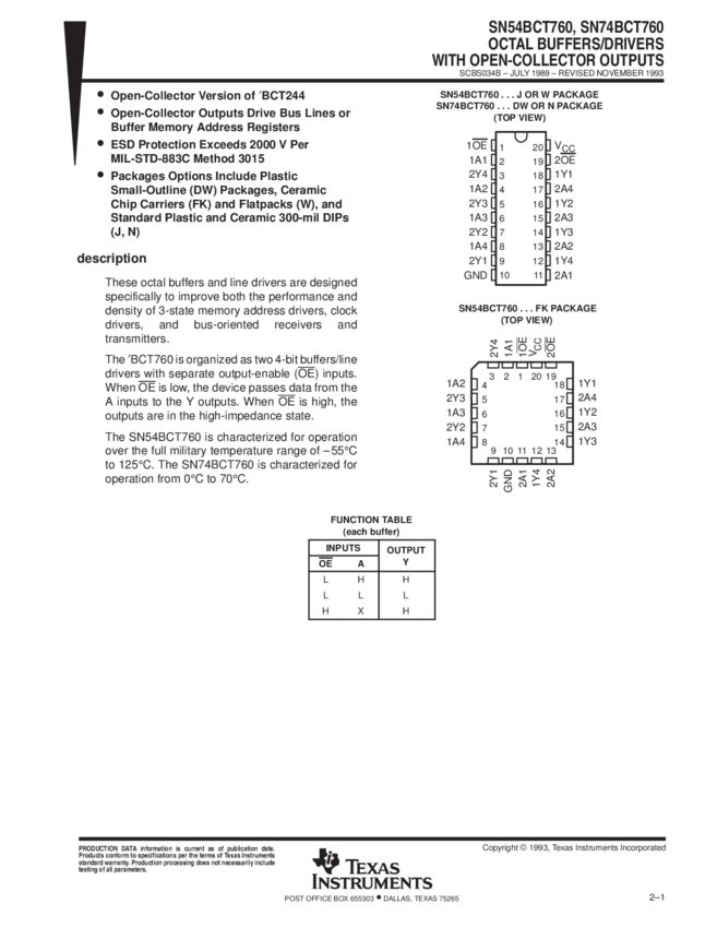 SNJ54BCT760J, SNJ54BCT760W, SN74BCT760N
