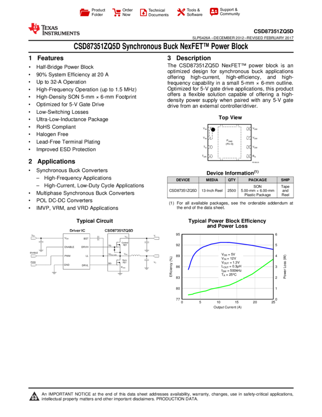 CSD87351ZQ5D Synchronous Buck NexFET Power Block 8-Pin LSON-CLIP T/R