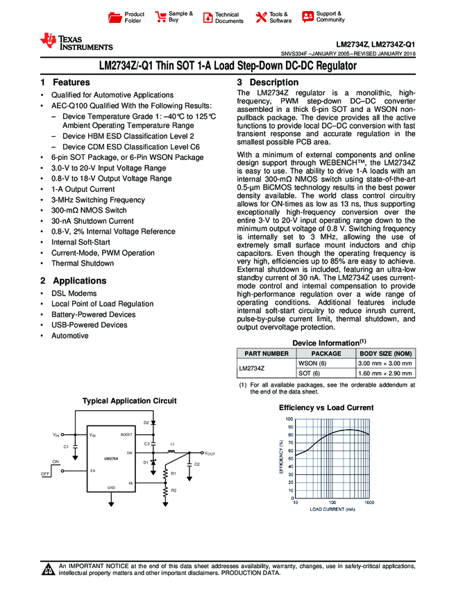 LM2734ZMK/NOPB Conv DC-DC Single Step Down 3V to 20V 6-Pin TSOT T/R