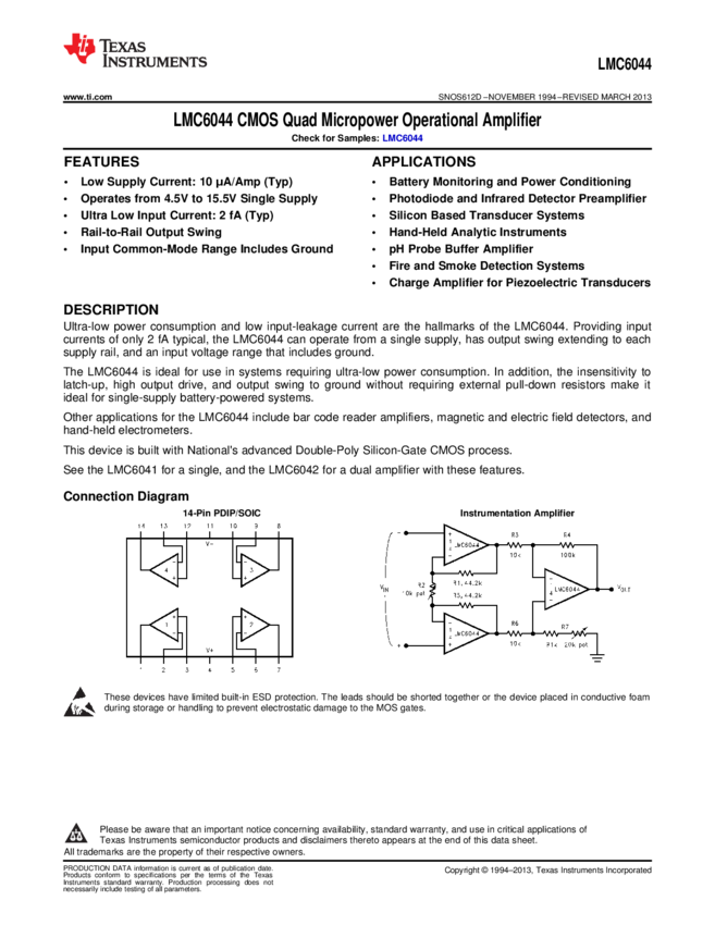 LMC6044IMX/NOPB, LMC6044IN/NOPB