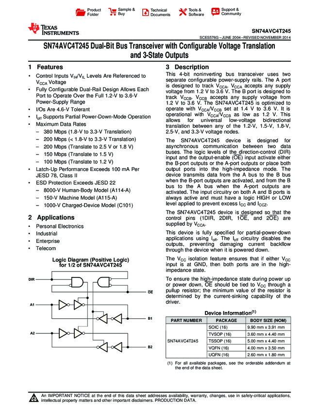 SN74AVC4T245PWT Voltage Level Translator 16-Pin TSSOP T/R
