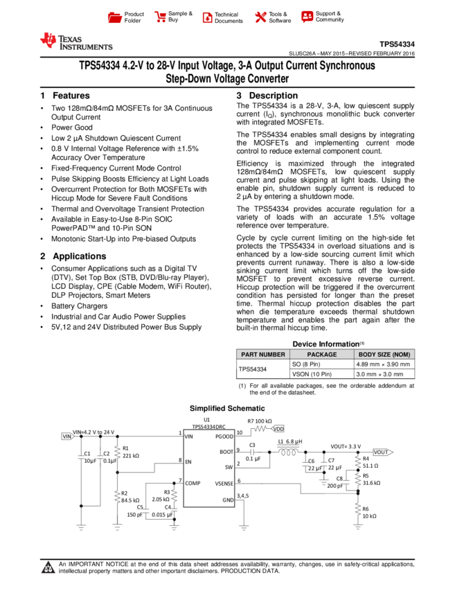TPS54334DRCT Conv DC-DC Single Step Down 4.2V to 28V 10-Pin VSON T/R