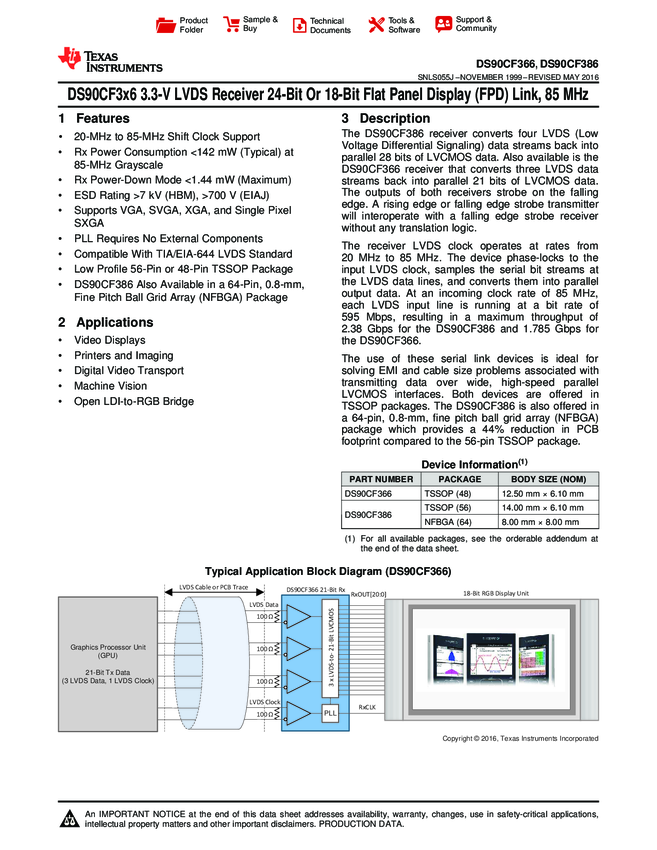 DS90CF386MTDX/NOPB LVDS Flat Panel Display 56-Pin TSSOP T/R