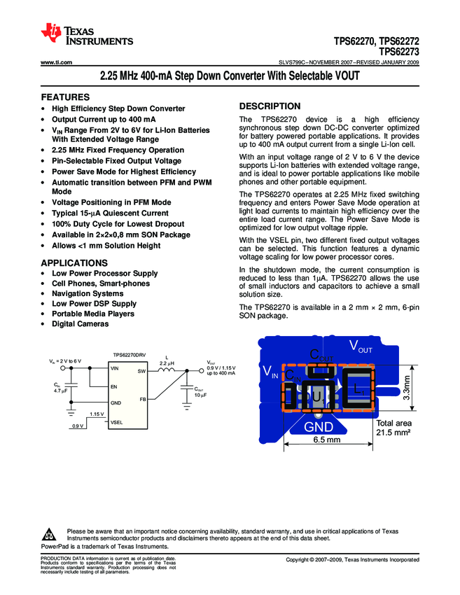 TPS62270DRVT Conv DC-DC Single Step Down 2V to 6V 6-Pin WSON EP T/R