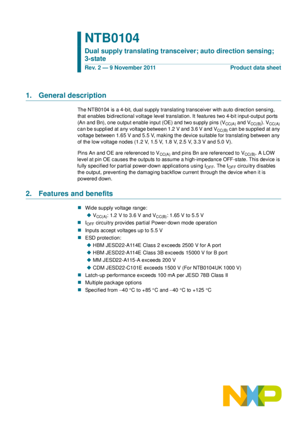 NTB0104BQ,115 Bus XCVR Single 4-CH 3-ST 14-Pin DHVQFN EP T/R