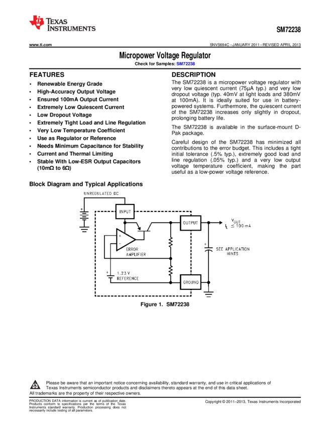 SM72238TDE-5.0/NOPB LDO Regulator Pos 5V 0.1A 3-Pin(2+Tab) TO-252