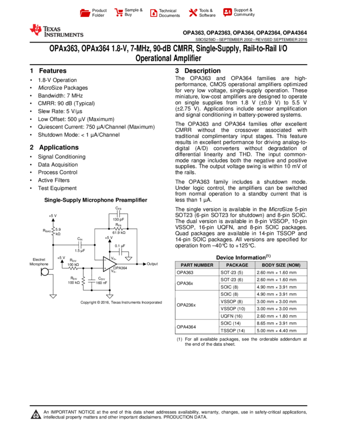 OPA2363AIDGST, OPA2363IDGSR, OPA364IDBVR, OPA363AIDBVT, OPA363IDBVR, OPA363IDBVT, OPA364AIDBVR, OPA364AIDBVT, OPA4364AIPWR, OPA4364AIPWT