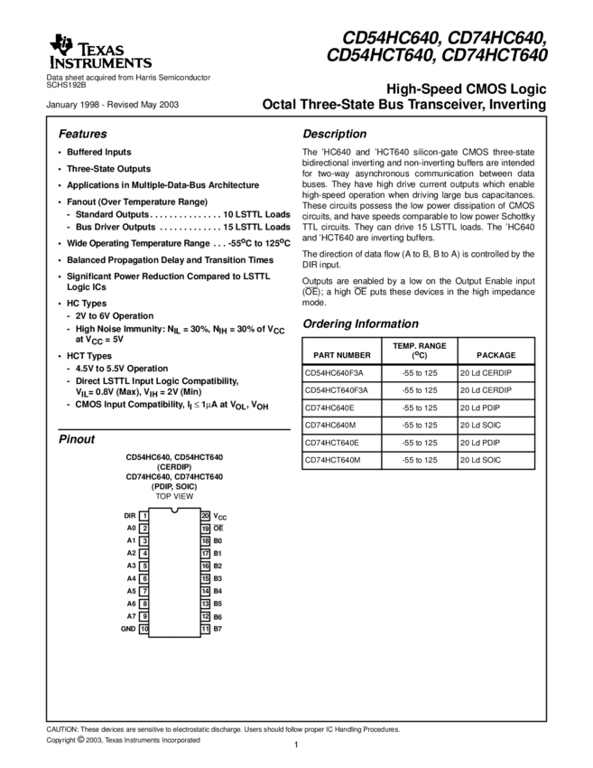 CD74HCT640E, CD74HC640M, CD54HCT640F3A, CD54HC640F3A