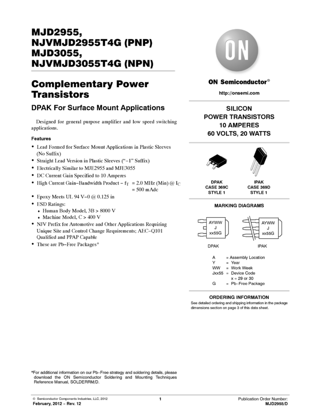 MJD2955, MJD3055, MJD2955T4G