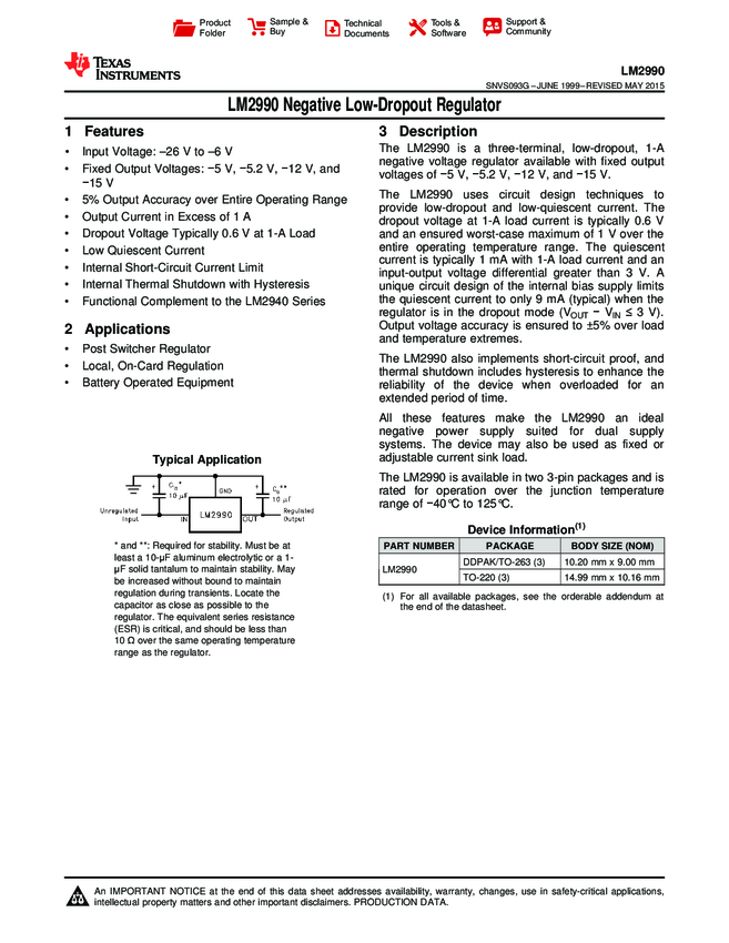 LM2990SX-5.0 LDO Regulator Neg -5V 1.8A 4-Pin(3+Tab) TO-263 T/R