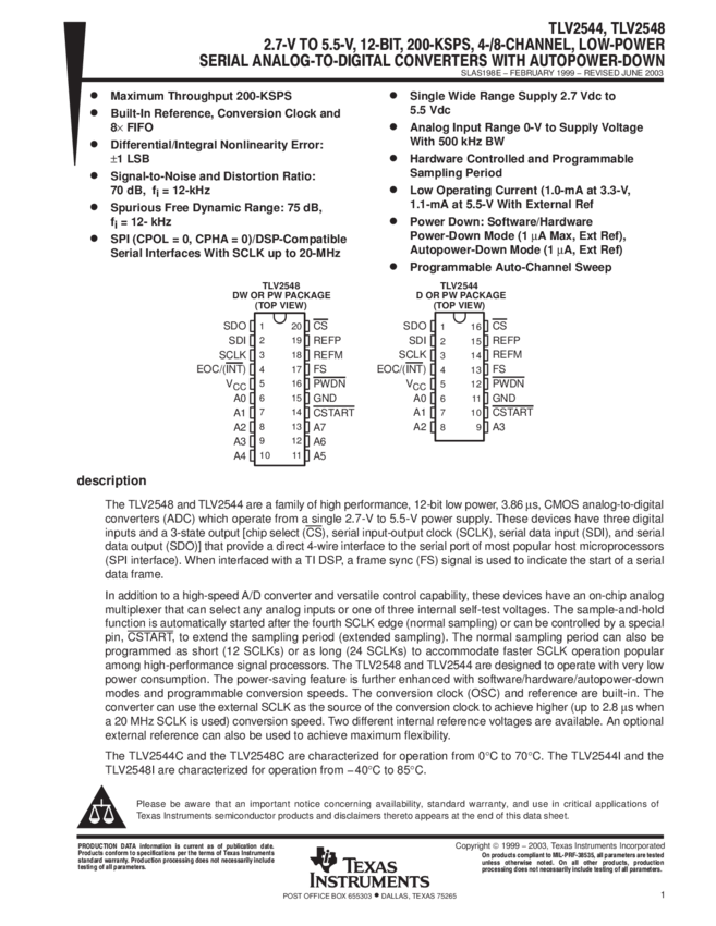 TLV2544IDR ADC Single SAR 200ksps 12-bit Serial 16-Pin SOIC T/R