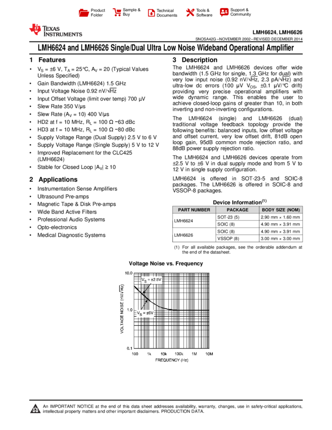 LMH6626MAX/NOPB OP Amp Dual Volt Fdbk ±6V/12V 8-Pin SOIC N T/R