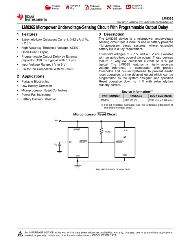 LM8365BALMFX27/NOPB Processor Supervisor 2.7V 1V to 6V 5-Pin SOT-23 T/R