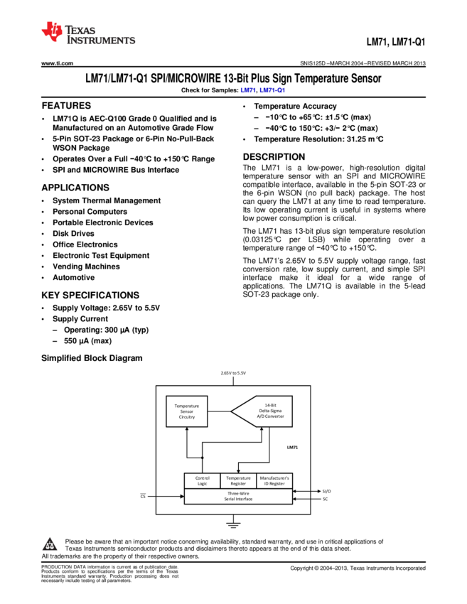 LM71CIMF/NOPB Temp Sensor Digital Serial (3-Wire, SPI) 5-Pin SOT-23 T/R