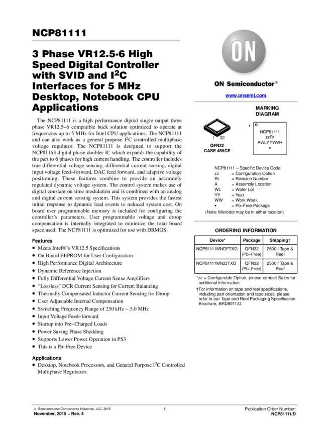 NCP81111MNDFTXG Voltage Mode PWM Controller 32-Pin QFN T/R