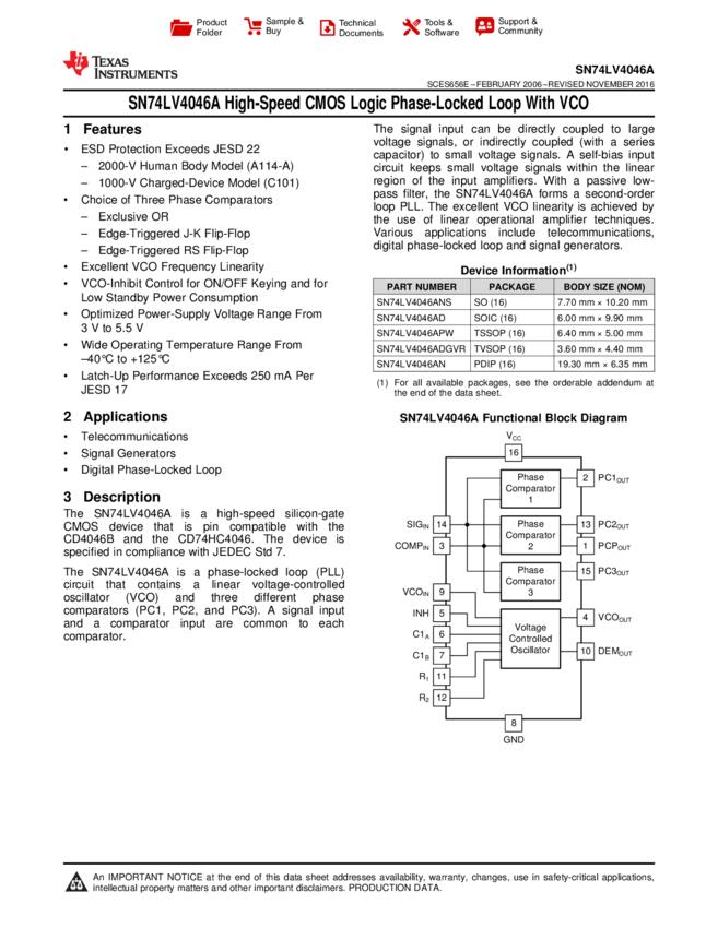 SN74LV4046AD PLL Single 16-Pin SOIC Tube