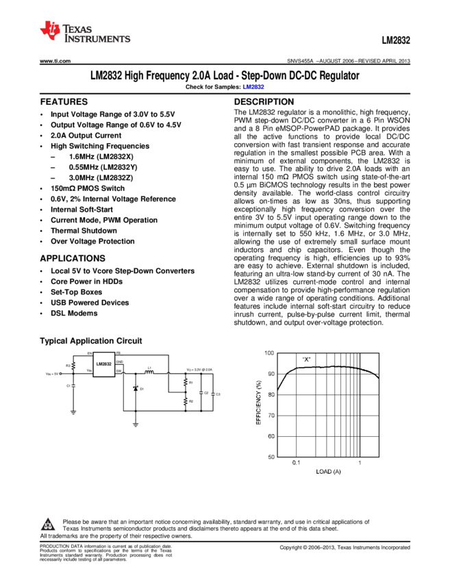 LM2832YMYX/NOPB Conv DC-DC Single Step Down 3V to 5.5V 8-Pin MSOP EP T/R