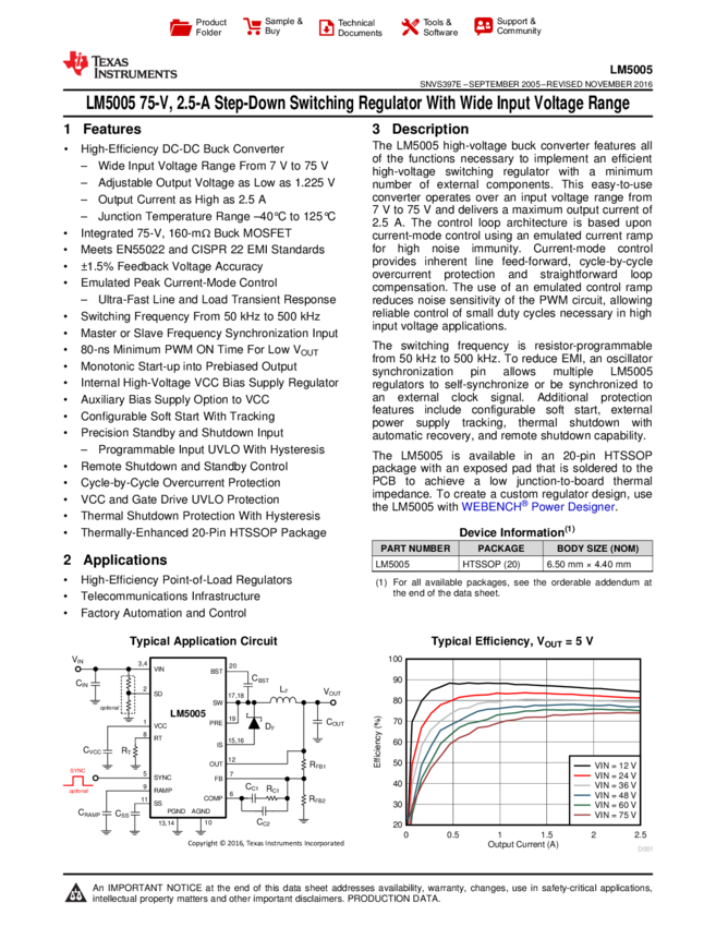 LM5005MHX/NOPB Conv DC-DC Single Inv/Step Down 7V to 75V 20-Pin TSSOP EP T/R