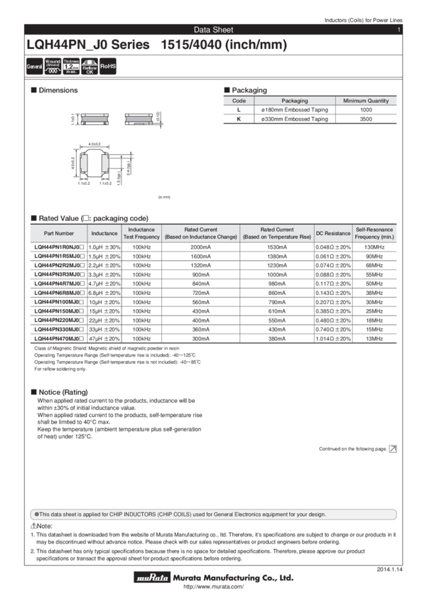 LQH44PN470MJ0L, LQH44PN1R0NJ0L, LQH44PN1R5MJ0L, LQH44PN3R3MJ0L, LQH44PN100MJ0L, LQH44PN4R7MJ0L