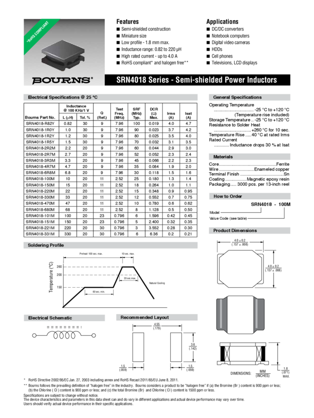 - SRN4018-1R5Y, SRN4018-220M, SRN4018-680M, SRN4018-100M, SRN4018-101M, SRN4018-330M, SRN4018-150M, SRN4018-R82Y, SRN4018-151M, SRN4018-1R0Y, SRN4018-221M, SRN4018-470M, SRN4018-4R7M