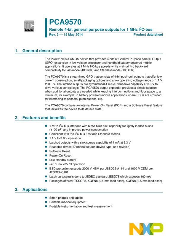 PCA9570GM4H General Purpose Parallel Output(GPO) Expansion 8-Pin XQFN T/R