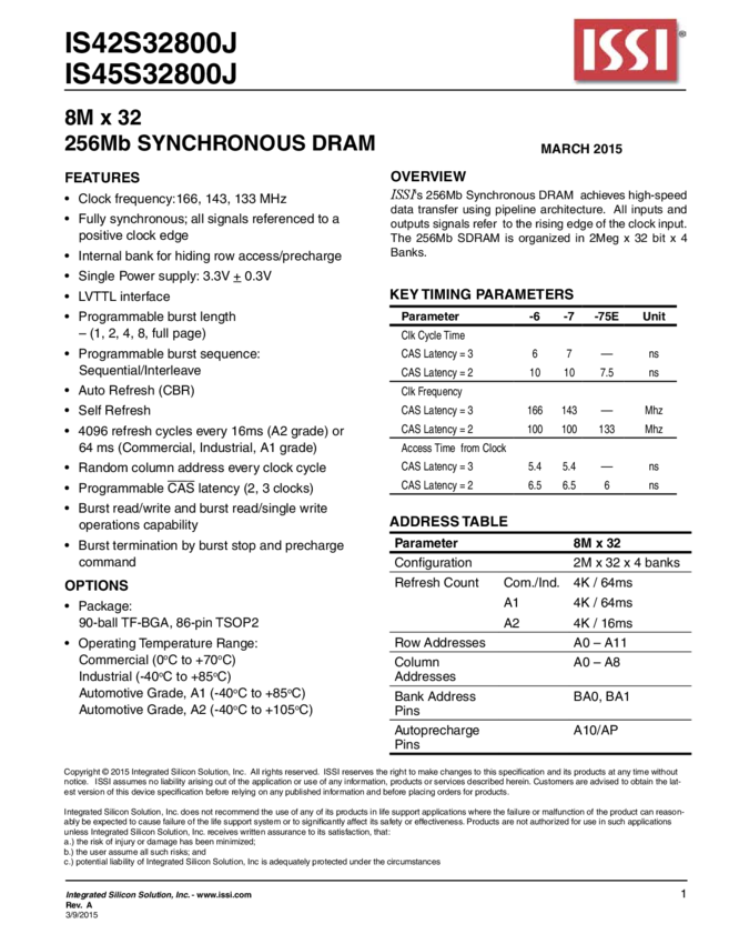 IS42S32800J-7BL DRAM Chip SDRAM 256M-Bit 8M x 32 3.3V 90-Pin TF-BGA