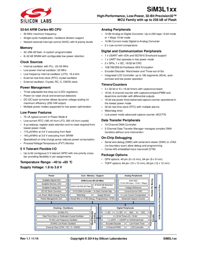 MCU 32-Bit SiM3L1xx ARM Cortex M3 RISC 256KB Flash 2.5V/3.3V 80-Pin TQFP