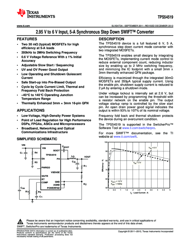 TPS54519RTET Conv DC-DC Single Step Down 2.95V to 6V 16-Pin WQFN EP T/R
