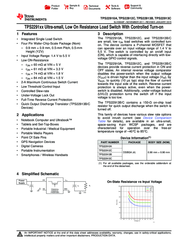 TPS22913CYZVR, TPS22913CYZVT, TPS22910AYZVT