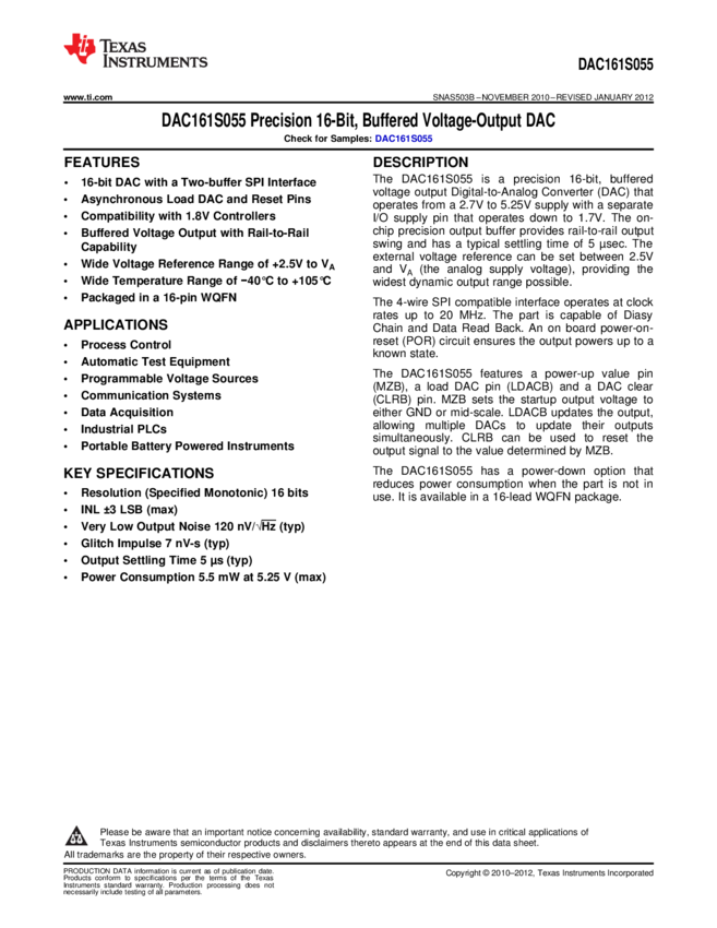 DAC161S055CISQ/NOPB DAC 1-CH 16-bit 16-Pin LLP EP T/R