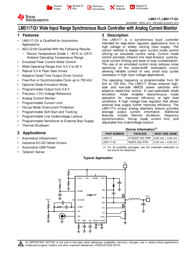 LM5117PSQE/NOPB Conv DC-DC Single Step Down 5.5V to 65V 24-Pin LLP EP T/R