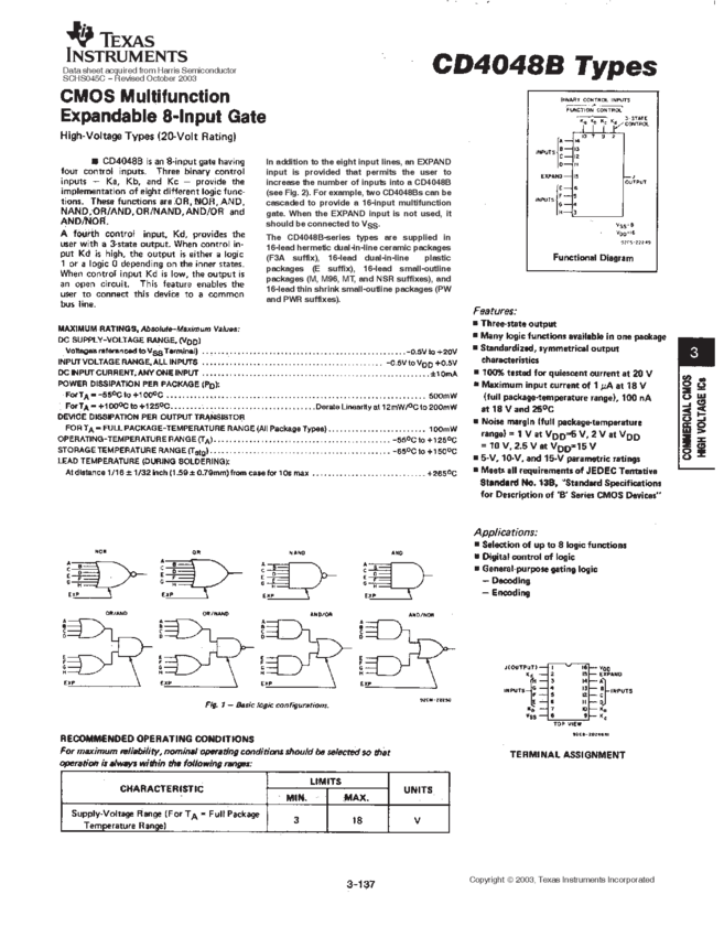CD4048BF3A Multi Function Gate 1-Element 8-IN CMOS 16-Pin CDIP Tube