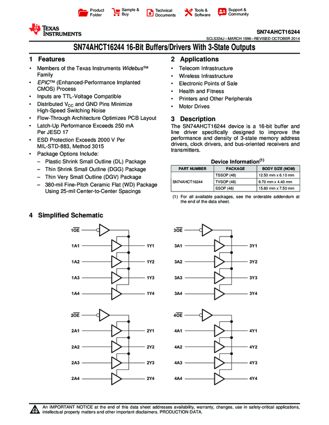 SN74AHCT16244DL Buffer/Line Driver 16-CH Non-Inverting 3-ST CMOS 48-Pin SSOP Tube