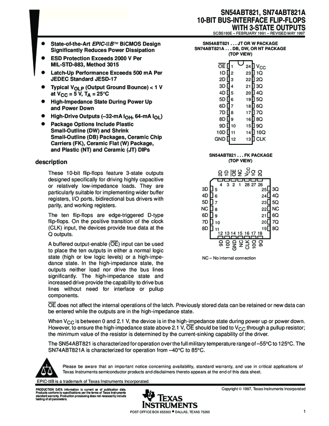 SN74ABT821ADBR Flip Flop D-Type Bus Interface Pos-Edge 3-ST 1-Element 24-Pin SSOP T/R