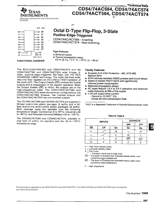 CD74AC574M96, CD54AC574F3A, CD74ACT574M96