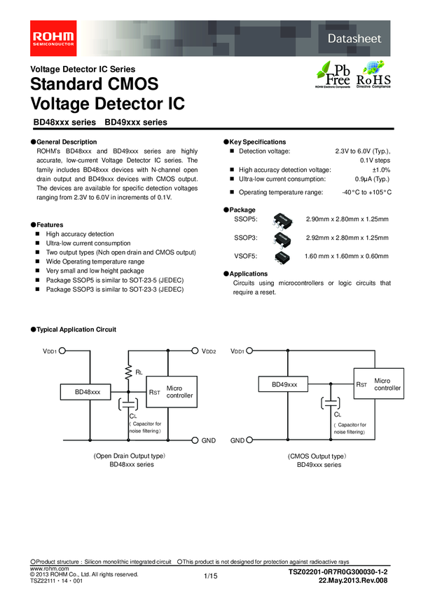 BD48K46G-TL Volt Supervisor Detect 4.646V 10V 3-Pin SSOP Embossed T/R