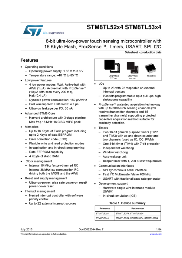 STM8TL53C4U6A MCU 8-Bit STM8T STM8 CISC 16KB Flash 1.8V/2.5V/3.3V 48-Pin UFQFPN Tray