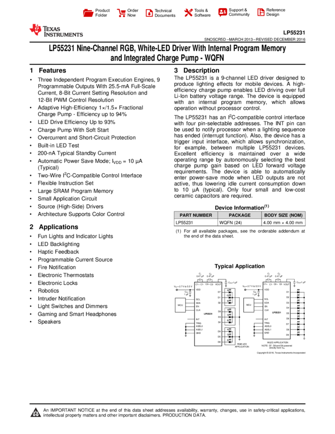 LP55231SQE/NOPB LED DRVR Boost 9-CH PWM 5.5V 0.0255A 24-Pin WQFN T/R